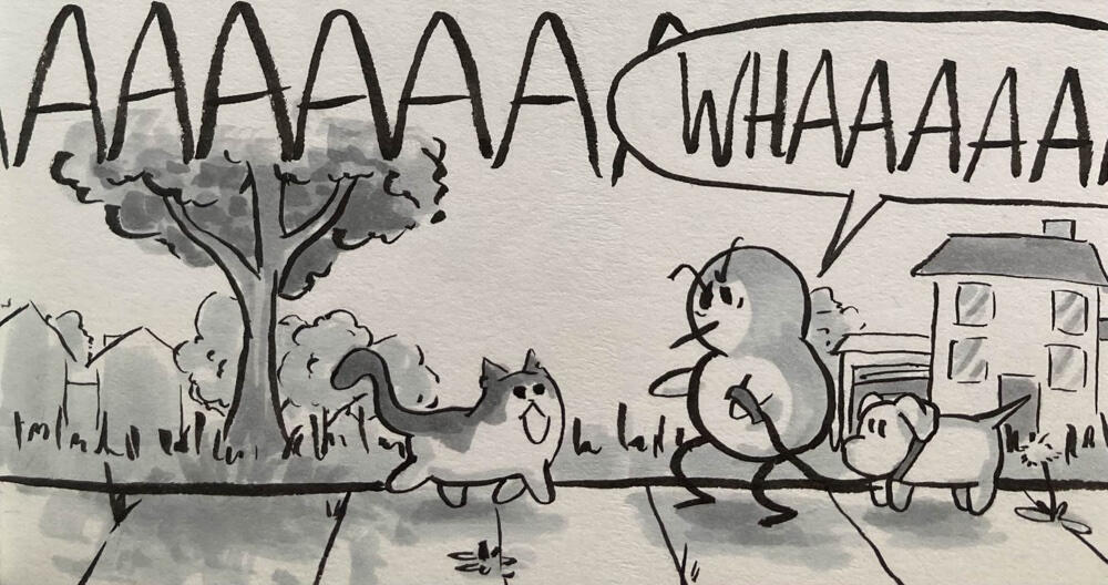 Inspired by my loud cat that followed me eveyrwhere whenever I walked my dog. Love him to bits!