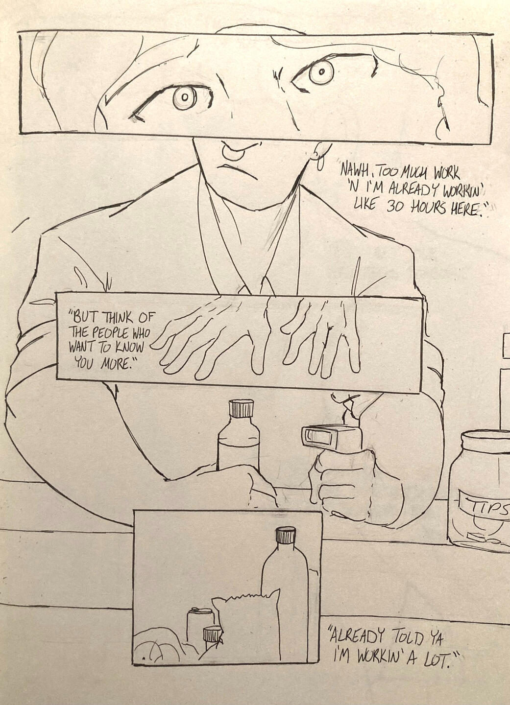 While I enjoy illustrating, I wanted to dabble more in editing, page layouts, layer effects, poetry, and whatever other methods I found best to help express the concepts I wanted to explore in these zines.