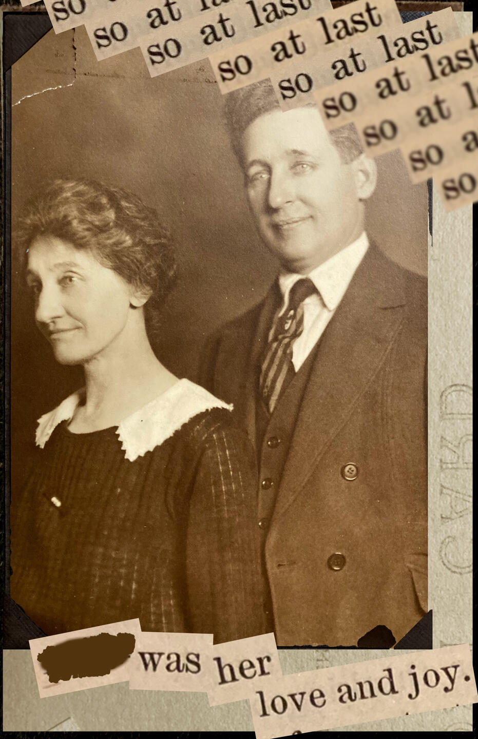 A collection of black out poetry inspired by old photos I've collected from different antique stores. The poems themselves come from pages of an old book also found from an antique store.